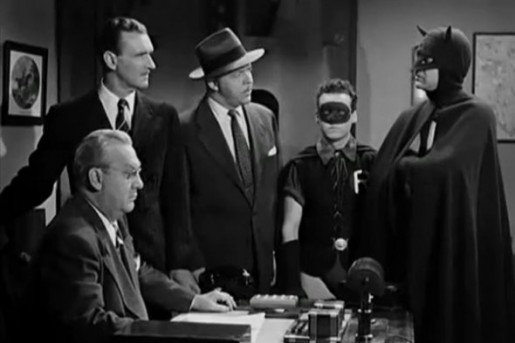 Batfact: Bill Corbett, Mike J. Nelson, and Kevin Murphy are currently giving the Mystery Science Theater 3000 treatment to each chapter of the  Batman and Robin serial through internet service RiffTrax.  As of this writing, they’re up to episode 8.  You can access them here.