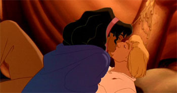 Julianne: That’s what strikes me about this film, in general—trying to imagine children wanting to play the soundtrack in their parent’s van on the way home from school, the way they would have with Aladdin (1992) or The Lion King (1994). It’s not just the prologue—all of the songs have this major underlying sadness to them—even the “up-beat” songs (of which there are all of. . .two out of eight). It’s funny, watching other Disney films that you always thought of as dark (like The Lion King or Beauty and the Beast) really aren’t that dark by comparison.