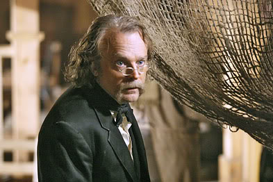“I wanted to bring in a guy who came into town as a medicine man, a physician, and Cochran [Dourif] hated him. He sold spirits to the people […] which was just booze […] he also had an Indian (really a black man named Johnson) with him to administer traditional medicine, which was also just booze. The medicine man was John D. Rockefeller’s father, who was a bigamist psychopath who would spend six months every year in the Deadwood hills as Dr. Levingston. The storyline we did in the third season where Langrishe adjust Heart’s back that was originally a story we had planned for Dr. Levingston Rockefeller lived in constant dread of the revelation of his father’s nevarious carrying-on.”-Milch