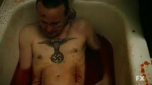 The main thrust of the episode centers around Dewey Crowe (Damon Herriman), a phenomenally dim-witted, Neo-Nazi, white-supremacist, who awakens in a hotel room with incisions in his sides.