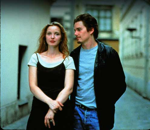 I love these films (the first two, I mean. I’ll see the third opening day, if I can). They capture so much of the spirit and philosophy that accompanies certain stages of a life. More than that, though, I love Jessie and Céline. Hawke and Delpy share screenwriting credits with Linklater, and their dialogue feels completely natural and revelatory. They’re friends in real life, and their chemistry on-screen is infused with warmth and affection as a result. They emerge as sharp, articulate, funny, vulnerable, endearing, fully realized individuals. Jessie may be a bit neurotic and condescendingly cynical, Céline may be about self-righteous and prone to emotional outbursts, but those traits serve to make the character more relatable, rather than less so. Their flaws make them more human, and the audience actually feels more towards them than they might if they were simply perfect, flawless creations.
