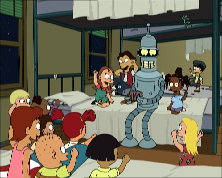 What It’s About.: Leela has an operation to give her two eyes instead of one thus making her appear normal, much to Fry’s protest.  She begins dating her doctor, again, much to Fry’s protest.  Meanwhile, Bender adopts the children from the orphanage Leela grew up at as part of an ill-fated get-rich-quick scheme in which he collects the weekly government stipends allotted to him for each child he adopts.