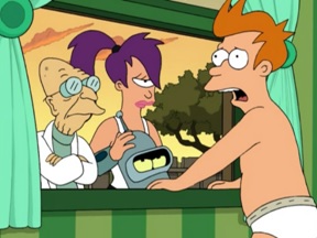 Funny thing, though, I didn’t actually like Futurama when it first premiered on Fox in 1999.  Bender was not the new Homer Simpson, despite what the advertising promised.  Plus, even being a lifelong sci-fi geek I failed to find a future overrun with oafish, alcohol-fueled robots particularly funny, and the running joke about modern day public figures having survived into the future as sentient-but-severed heads living in formaldehyde jars seemed plain weird.  It was not until the re-runs made their way to Adult Swim that I converted, enticed by the show’s ability to wield pathos with the precision of a skilled surgeon.  Plus, I finally understood many of the show’s pop culture references, like an entire episode being a parody of 2001: A Space Odyssey.  Even if the new Comedy Central episodes weren’t as uniformly strong as the show’s final seasons on Fox, I still looked forward to every episode, and in truth enjoyed the new episodes of Futurama more than the current new episodes of show co-creator Matt Groening’s other long-in-the-tooth animated classic The Simpsons.