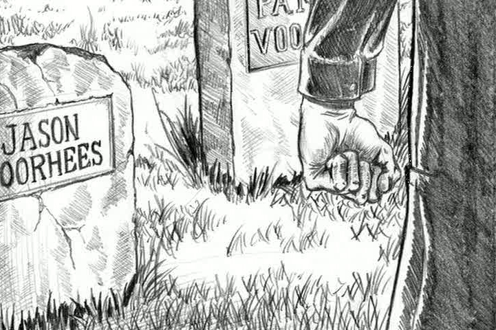 To be clear, Jason wasn’t actually buried with his hockey mask. Tommy brings it with him to the grave