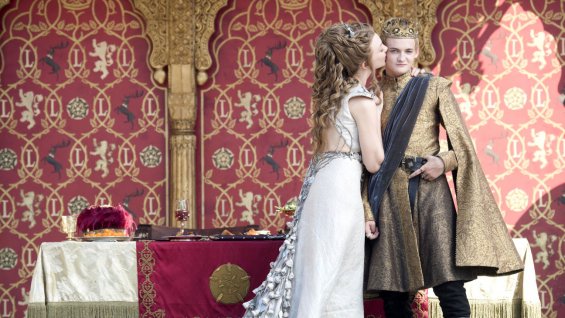 Maybe from this point forward the weddings in Game of Thrones‘ Westeros will be sparsely attended affairs, everyone too spooked from the massacre at Robb Stark’s (“Red,” after the amount of blood) wedding and poisoning at King Joffrey’s (“Purple,” after the color of wine and Joffrey’s face as he chokes) wedding to tempt fate. Wedding invitations will have to carry Gallagher-like warnings except instead of chunks of watermelon and whatnot those members in the front two rows might be doused with blood. To be fair, that might overstate it a bit since the latest wedding death was almost entirely bloodless, and wasn’t a massacre but simply the death of one man (or kid bully given too much power): King Joffrey.