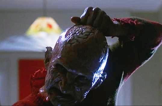 Freddy_Krueger_005Nightmare 2 has historically been treated as the Halloween 3 of the Elm Street franchise, i.e., the odd one existing outside of continuity, but it has a cult following and is at least responsible for some of the iconic lines in franchise history, such as “You are all my children now” and “You’ve got the body. I’ve got the brains.”  That last one, David Chaskin now admits, was not completely his idea, as he told the Never Sleep Again documentary, “I have to admit that the body and brain line and peeling back his brain like that was Bob Shaye’s idea. Bob had some really good visual ideas.”
