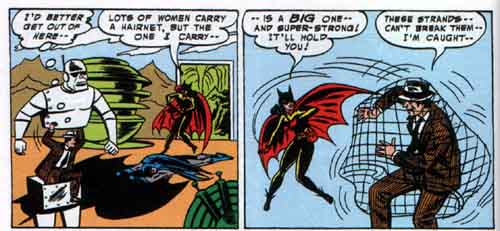 5) C. Batwoman’s lady-like crime fighting devices DID include a powder puff of sneezing powder, charm bracelet handcuffs, a hairnet that expanded to ensare hapless criminals, and a perfume flask filled with teargas. She did not, however, use a sleep-inducing lipstick presumably because that’s really more of a Poison Ivy kind of thing.