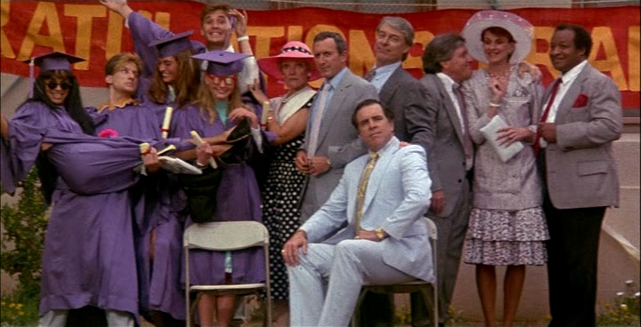 No, not that one. The Fat Boys did a rap song with Robert Englund for Nightmare on Elm Street 4, but presumably to stay hip and “down with the kids these days” Elm Street 5 originally featured a sequence during the graduation ceremony where Alice, Greta, and Yvonne performed an impromptu rap song.