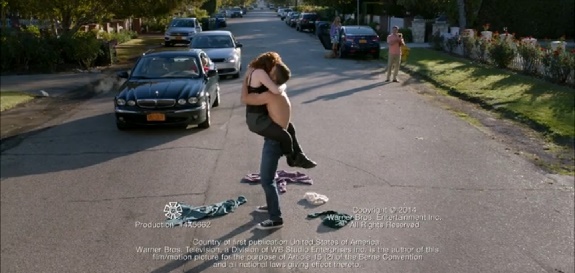 Whereas George couldn’t bring himself to admit his feelings to the woman he loved Tessa would not go out without a fight, embracing Ryan in the middle of the street like something out of a romantic comedy, their shared passion requiring no words but lots of kissing. It is a big, romantic moment, not entirely dissimilar to any other monumental kiss by any number of prior will they/won’t sitcom couples. However, this being Suburgatory of course it would go bigger than expected, Tessa and Ryan quickly escalating their romantic embrace to a something closer to a public sex display, him shirtless, her down to just her bra, the closing credits cutting off before either party had removed any clothing beneath the waist. You thought you knew where the moment was going before it went somewhere weird and funny and awkward and awesome, reminding you that there’s nothing else quite like Suburgatory on TV.