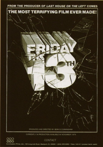 This version of the film was to be called Long Night at Camp Blood, but eventually, Cunningham remembered the “Friday the 13th” idea from Manny’s Oprhans.  Convinced that the title Friday the 13th would sell the movie alone, Cunningham took out a full-page ad in Variety over the Fourth of July Weekend of 1979: