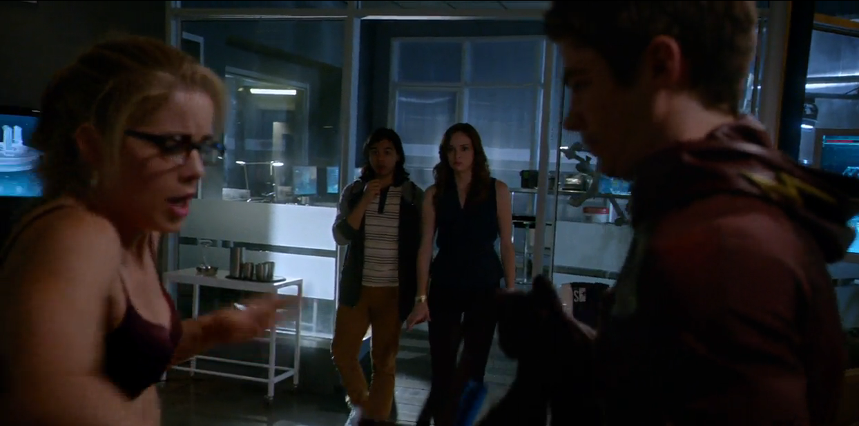 This episode appeared to roughly take place a month or so after the last one, thus reflecting the amount of time that passed in the real world between episodes, which is the Arrow way to handle a hiatus. So, to Team Flash Oliver Queen would have died over a month ago. Even so, unless I missed it there was no reference in this episode to his death. That seems like something which should have been referenced, the same way that when a major character died on Buffy the Vampire Slayer someone showed up on Angel to tell them about it. However, because of when these shows air that would have meant we would have seen The Flash cast react to the news before the actual cast of Arrrow, and maybe it’s best if Arrow goes first with that. Plus, maybe the two show’s timelines aren’t perfectly synced up right now.