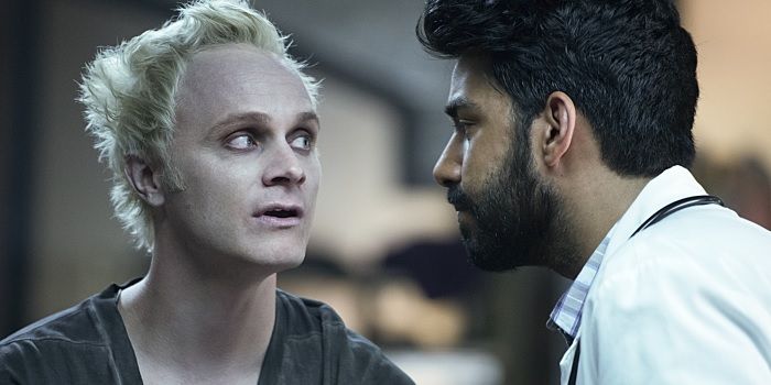Liv’s sudden ability to draw and paint did serve an important function to the story: The police sketch she made of her zombie maker resulted in him showing up at the morgue, which frankly overtakes much of the episode. As soon as David Anders’ Blaine DeBeers shows up, Clive and the crime of the week go away for a while, only really returning once Clive pops back in after having obtained some really crucial information on his own. That was pretty lazy, but Blaine is the character the critics who screened iZombie’s first 4 episodes really responded to, comparing him to Spike from Buffy the Vampire Slayer. He certainly bears a slight physical resemblance with the spiky blonde hair and general rocker chic clothes, and he is instantly funny.