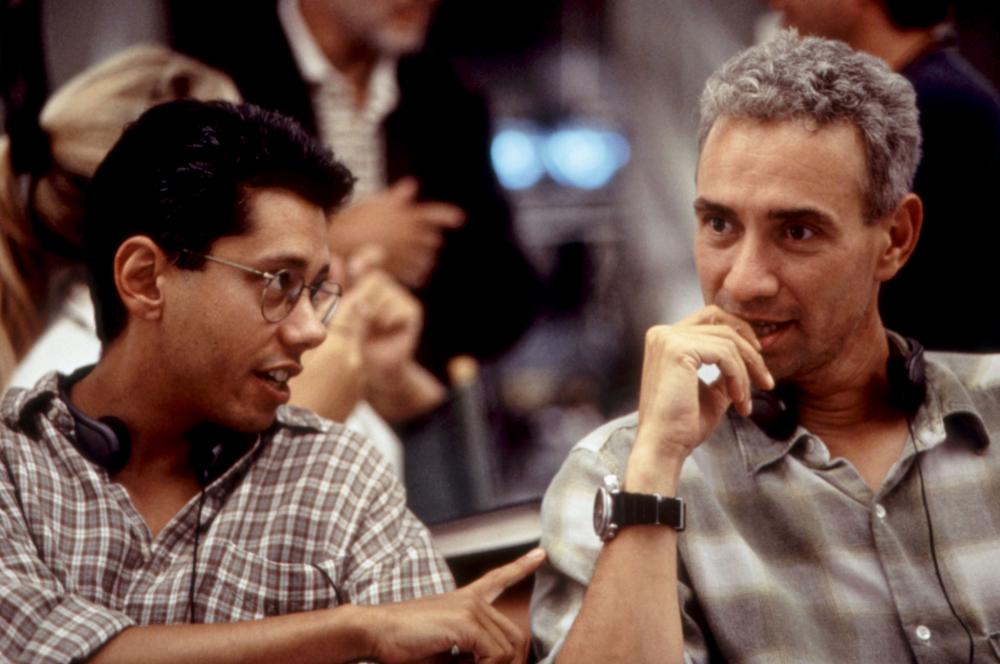 Dean Devlin (left) and Roland Emmerich (right) on the set of 1998’s Godzilla