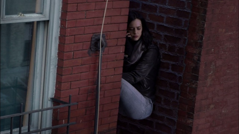 Even recognizing the ultimate weaknesses of “99 Friends,” I actually welcomed the diversion. I loved watching Jessica’s paranoia over whether or not any random, prospective client is truly who they say they are or in fact a spy for Kilgrave. I got a kick out of seeing Jessica nonchalantly spy on her client while balancing in-between two buildings, at a height only someone with superpowers could reach.