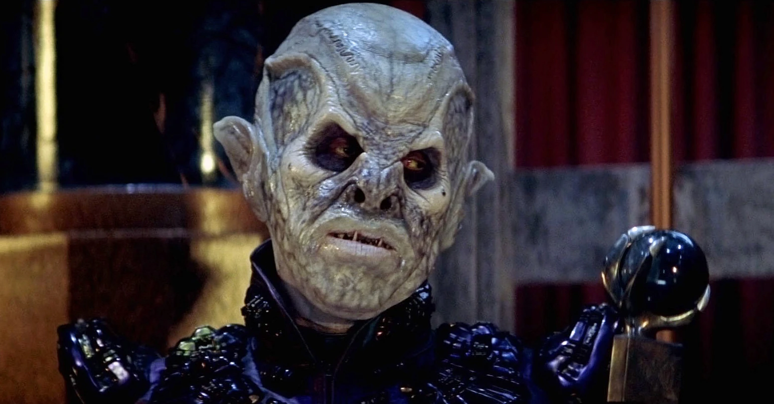 This intimidating-looking fella is presumably the lead villain thus meaning that has to be Idris Elba. The actor’s distinctive voice can be heard to proclaim, “This is where the frontier pushes back!” Oh, I see what you did there, Simon Pegg and Star Trek: Beyond co-writer whose name I don’t remember. The classic Star Trek voice-over prologue always starts, “Space, the final frontier, these are the voyages of….” Well, what happens if that frontier pushes back? It’d look an awful lot like this guy, who vaguely reminds me of maybe the Remans in Star Trek: Nemesis mixed with the Jem Hadar of Star Trek: Deep Space Nine: