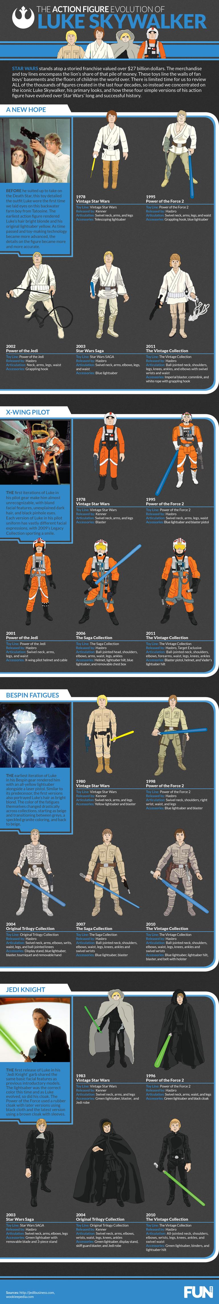 Much of that history is nicely realized in this infographic about the history of Luke Skywalker action figures, provided by Fun.com: