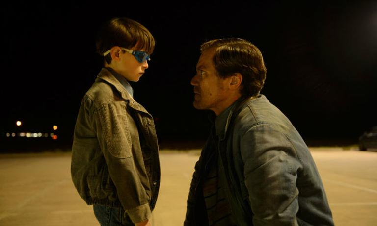 Hard-faced men in a hotel room hurriedly gather their things as a TV news report blasts out the details of an Amber Alert. We quickly note that one of the men in the room, Michael Shannon’s Roy, is the Amber Alert father accused of kidnapping his own son, Alton (St. Vincent‘s Jaeden Lieberher). The unidentified other man (Joel Edgerton) leads them to an old muscle car outside the hotel room, and they plunge deep into the Texas night, using night vision goggles to drive without any headlights and a police radio scanner to further avoid detection. Even the flashlight Alton was using to read his comic books in the backseat has to be turned off.
