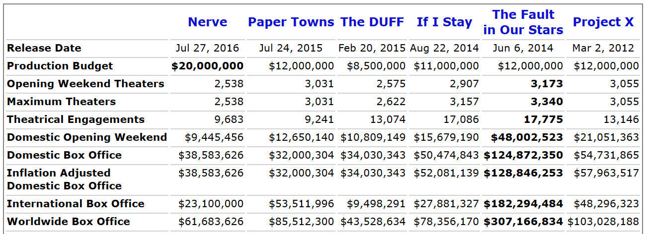 On top of that, outside of the American Pie franchise high school movies have never been big sellers at the international box office, likely owing to general cultural differences. And anything that doesn’t play well worldwide is a non-starter for most studios. So, bye-bye, high school movies. Hope you’re happy going straight-to-video and populating the dark corners of Netflix, reminding people just how many National Lampoon-branded sex comedies have been cranked out in recent years.