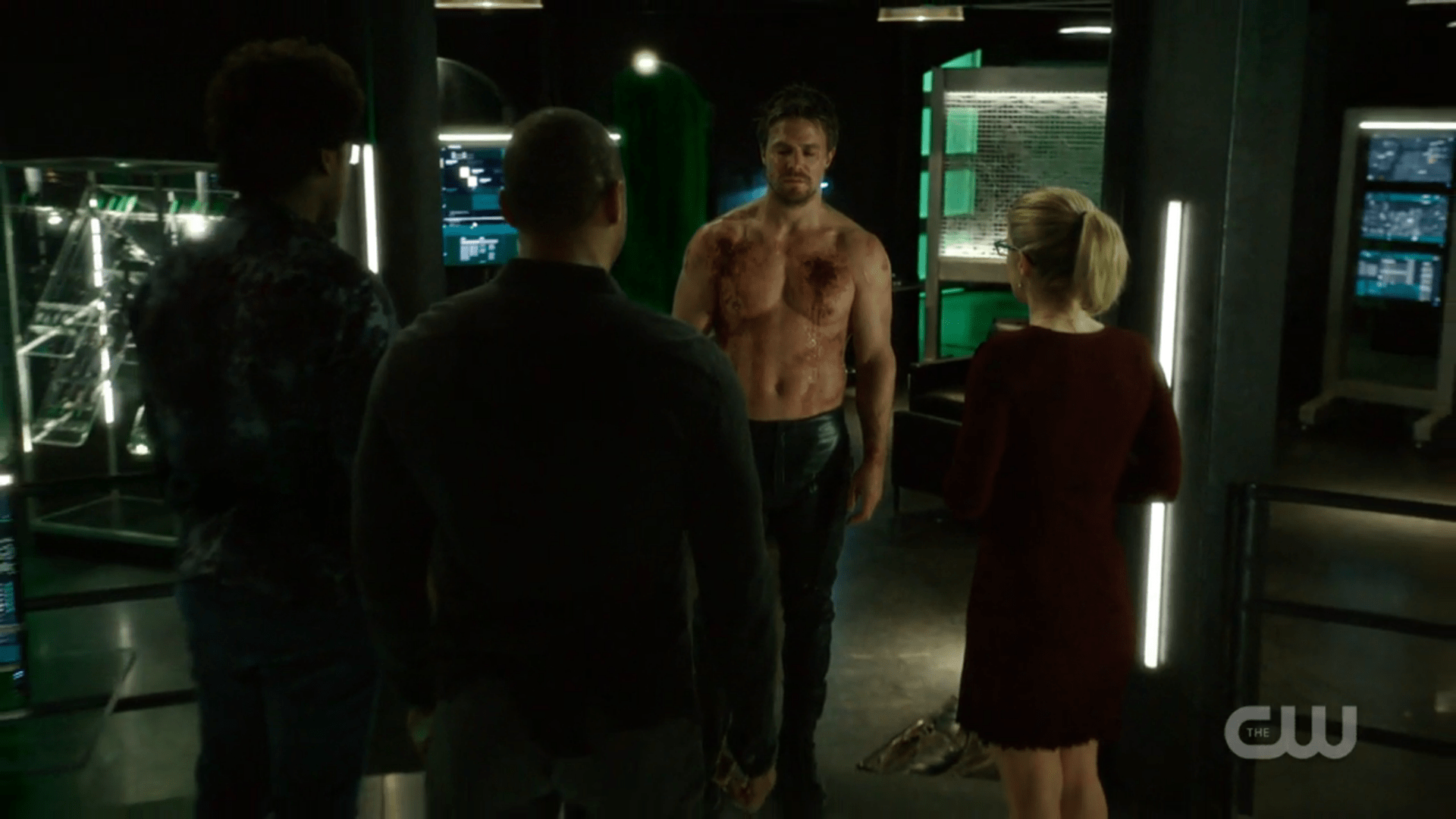 Fair enough. The point could have been more communicated more eloquently. I think back to when I attended a Katie Cassidy panel at convention, and multiple female fans during the Q&A portion joked that they’ve never been able to get into Arrow because of all the brooding and manpain. Instead, they wanted to talk to her about Gossip Girl. Of course, by this point we know exactly what Arrow is, but sometimes its more brooding vigilante hero tendencies are undercut or softened by Felicity or other such pomposity-puncturing presences. To that point, I’ve encountered multiple commenters to my reviews who’ve flat out told me Oliver is actually their least favorite part of Arrow. It was those fans I had in mind when I mentioned that if Arrow’s “oh, the whoa of Oliver’s poor soul” go-to device for drama is not for you then even though “Kapiushon” was the best possible version of this it probably still wasn’t for you. To conflate full-on torture with manpain and brooding was a mistake on my part, or at least this episode wasn’t really a case of brooding. Instead, it was a case of literal manpain.