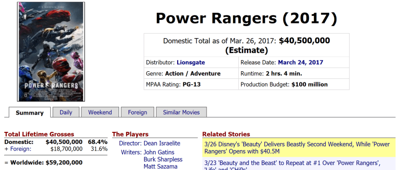 Now, I’ll just pause a moment to look up Power Rangers’ opening weekend box office numbers: