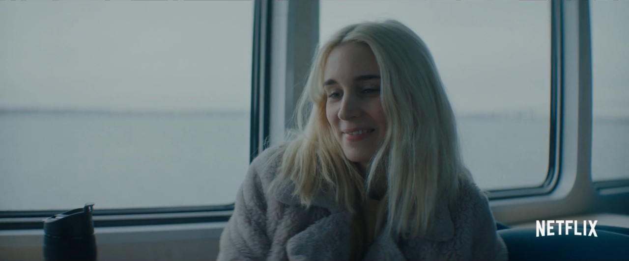 Directly behind them on the ferry is an electronic ticker displaying a live tally of the number of worldwide suicides since the discovery (it’s over 4 million). A newscast on a nearby TV describes it as people offing themselves in the hopes of “getting there,” i.e. the afterlife. Will is skeptical of the scientific evidence behind the discovery while Isla is simply more concerned with the social politics of it all, such as whether or not taking part in a group suicide is the ultimate sign of weakness. Once off the ferry, they part ways.