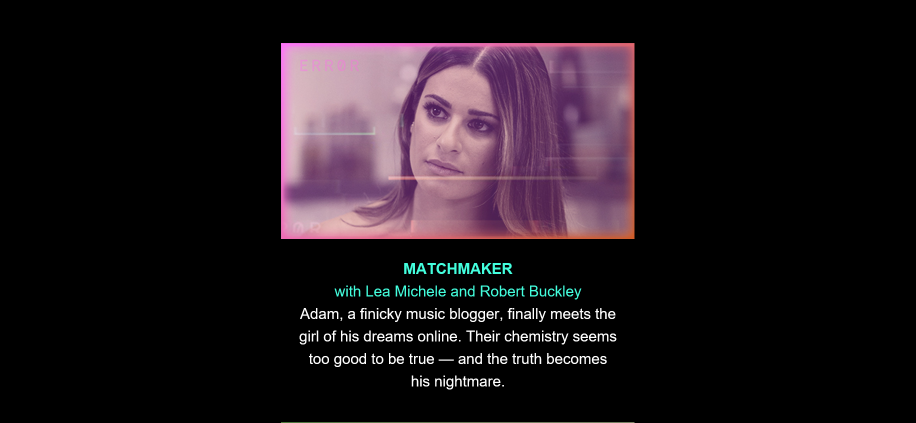 24 hours ago, though, I hadn’t even heard of Dimension 404. Then Hulu emailed me this to celebrate the debut of the first three episodes: