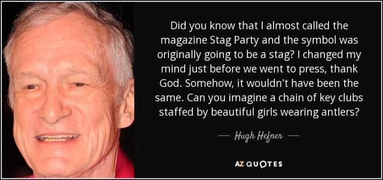 Before he ever had collaborators or a budget, Hefner knew the title of his magazine was going to be Stag Party, and that name stuck all the way until the point of them putting finishing touches on the first issue. Then they received a cease and desist letter from a hunting magazine called Stag. With only a week before their deadline, they were forced to massively revise their first issue and come up with a new title.