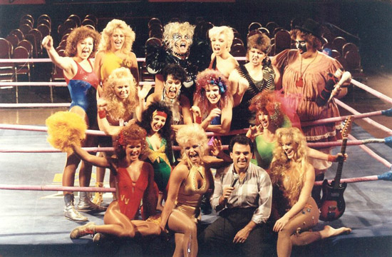 For the record: My grandpa probably never watched GLOW. He was a WCW/WWF man, and lady wrestlers didn’t really become a serious thing in either of those organizations until the mid-to-late 90s. But some of those impressive acrobatic moves which launched future WWE Hall of Famers like Lita and Trisha Stratus were being practiced in GLOW a decade earlier by a bunch of actresses who found wrestling preferable to dealing with the bullshit sexism and casting couches of Hollywood.