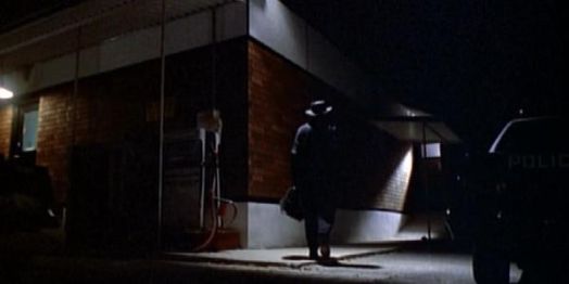 Perhaps nothing better epitomizes Halloween 5’s filmmaking-on-the-fly mentality than the Man in Black. As played by Don Shanks, the stuntman incidentally who also played Michael in 5, the Man in Black is a mysterious figure lurking in the shadows throughout the film. He finally intercedes on Michael’s behalf at the end to break him out of prison.