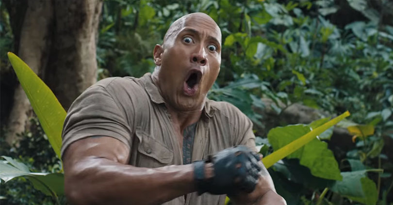 If I were to simply cut and paste the above paragraph and repeat it around 12 more times, perhaps only breaking to put in the occasional plug for a shitty Sony product, you’d have a rough idea of what it’s like to watch Jumanji: Welcome to the Jungle. The premise of the film is actually quite inventive, but that’s sometimes hard to see past the obvious desperation of the five (!) credited screenwriters and, more likely, the studio suits and producers to make sure even the most video game ignorant among us can keep up with the plot.