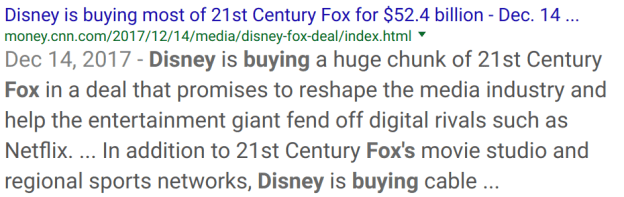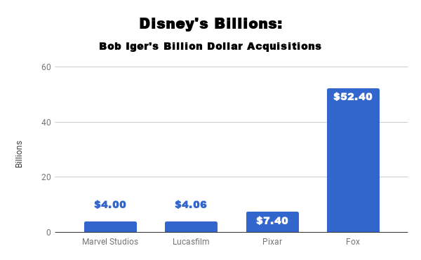 The scale of it is still hard to grasp. I updated the article to put in a chart to visualize how Disney spent $4 billion apiece for Marvel and Lucasfilm, $7 bill for Pixar, and $54 bill for everything at Fox. The other three combined don’t even add up to a third of the Fox money pot.