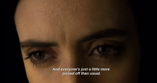 Two small problems: Jess has a solid alibi, and some people on the force remember what Kilgrave did to them at the precinct. They weren’t exactly sad to see Jess put him away, and are now willing to give her the benefit of the doubt. Well, not everyone feels that way, but for now, the cops won’t be an issue, which is a relief. After Misty Knight’s superhero-blocking on both Luke Cage and The Defenders I’ve had just about enough of the in-the-dark authority figures standing in the way of the plot just to eat up some time on these Netflix shows.