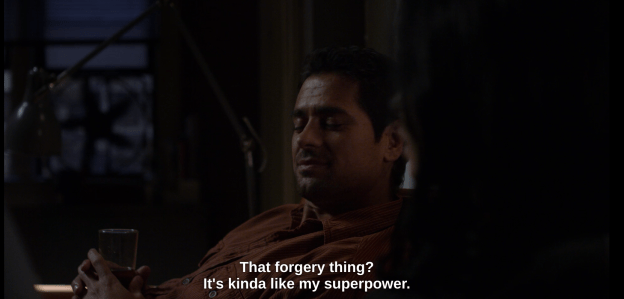 More detective work. Pulpy voice-overs (like Jessica’s “Summer in New York City. It’s hot. It’s humid. And everyone’s just a little more pissed off than usual.”) Red herrings disappoint, as is their way. Finally, some leads pan out, answers are arrived at. Jessica and Trish’s romantic lives go in wildly opposite directions. Hogarth is a sneaky devil, I tell ya’. Malcolm continues to look great with no shirt on (was there some fan letter writing campaign to get him 90% more naked this season I didn’t know about?) Then a big cliffhanger.
