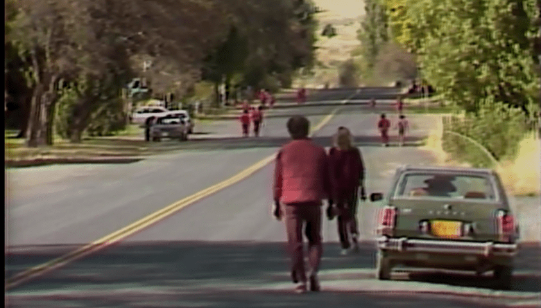 The Way Brothers first make their case to us in a 10-minute prologue mixing together talking head segments of the current residents of Antelope with a dizzying array of archival clips communicating the gist of the story. At one point, we see footage of a robed, long-bearded Indian man slowly walking along a red carpet laid out in the middle of a city street as a handful of his supporters, all dressed in red, dance and cry in his presence.