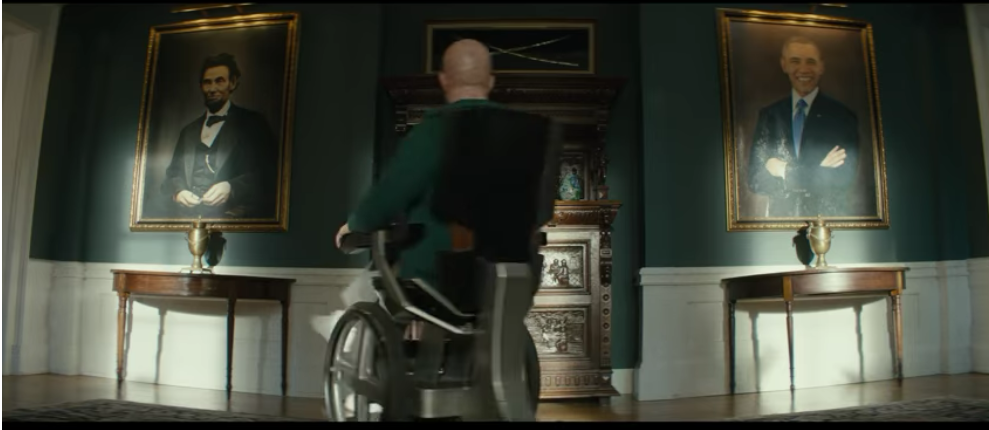 Deadpool playing with, presumably, Xavier’s wheelchair.