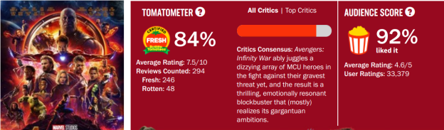 At last check, #InfinityWarAwful isn’t trending on Twitter. The box office isn’t dwindling and thus validating the film’s critics, though it might be too early to make that call since Infinity War hasn’t even reached its second weekend yet.