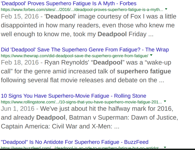 Thus, the Deadpool franchise has become the routine excuse the internet uses to talk about superhero fatigue.