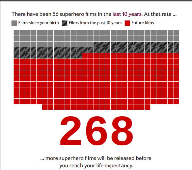 That all being said, this – from Slate’s superhero movie calculator – sounds insane to me: