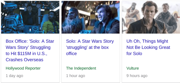 Son of a bitch! Everyone’s already made that joke? Really? Fine, then let me say this about Solo: A Star Wars Story’s box office: “Rubber baby buggie bumpers!” That’s right – y’all are quoting A New Hope. Well, I just quoted Last Action Hero! Top that, internet.