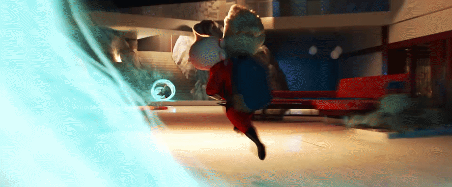 The plot this time: After being caught using their powers in an effort to stop Underminer’s attempted bank heist teased at the end of the last film, the Parr family – Bob (Craig T. Nelson), Helen (Holly Hunter), teen daughter Violet (Violet Powell), speedster son Dash (Huck Milner) and baby Jack-Jack (Eli Fucile) – are again reminded by the authorities that being a superhero is still illegal. Quickly after that, they’re living out of a motel – since their house was destroyed in the first movie – down to their last dime and unwanted by their own government. Things could be better.