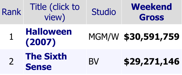 The Sixth Sense and Halloween.
