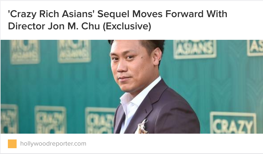 The message seems to have been received. Or at the very least, we’re in store for some Crazy Rich Asians knock-offs and sequels: