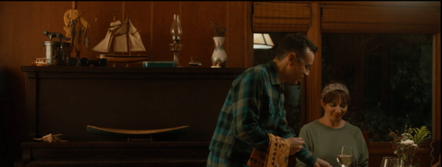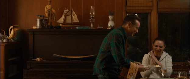 The pilot announces this theme immediately, giving us a rolling screen montage of Oscar and June’s courtship, marriage, wildly happy early years, and quietly unhappy later years. Yang, who directed half of the season’s 8 episodes, makes especially clever use of a summer lake house to chronicle the couple’s transition into what Eternal Sunshine once called “the dining dead.” June, who once genuinely enjoyed their trips there, continues to fake smile in response to Oscar’s every meticulously prepared meal, and he continues to smile back, either oblivious to her obvious despair or too afraid to address it.