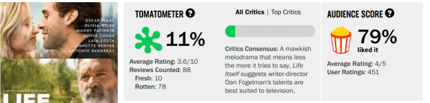 A fair point, in many instances, but not this one. Life Itself was panned by men and women, black and white. As Alison Willmore noted, it’s arguably a more objectionable film for women than men. It “directly caters to the white male gaze, including the fact that it contains multiple manic pixie dream girls, Olivia Wilde giving a monologue on Bob Dylan’s greatness, and characters who adore [Quentin] Tarantino so much they do PULP FICTION for Halloween.”
