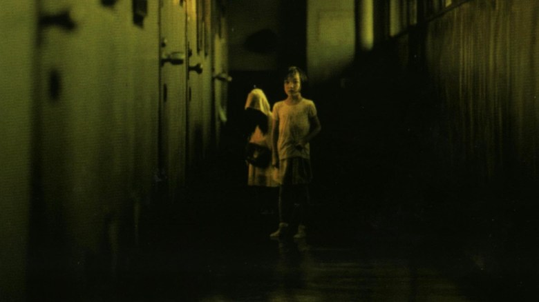 Contrast that with Hideo Nakata, who was in a very different position in his career than Anvari when he made 2002’s Dark Water. By that point, Nakata had already emerged on the Japanese film scene with his seminal adaptations of Koji Suzuki’s Ringu novels. Ringu (1998) and Ringu 2 (1999) kickstarted a wave of lookalike films unseen at that volume in the horror genre since the great slasher craze of the early 80s. When the inevitable American remake The Ring arrived in 2002, Sadako (renamed Samara in the remake) had already been joined by countless other pale-skinned, long-haired, wall-climbing girl ghosts with grudges in J-Horror titles. Many of them were also eventually remade. Rather than fight it, Nakata joined the wave, delivering another little girl ghost story adapted from a Koji Suzuki story.