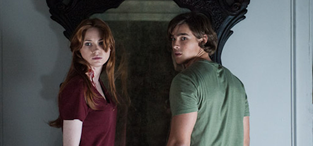 Oculus centers around two siblings, Kaylie and Tim Russell (played by Karen Gillan and Brenton Thwaites in their adult incarnations). Tim has recently been released from a mental hospital, held there for claiming supernatural forces caused his parents’ deaths. Kaylie works at an auction house and has spent her time researching and tracking down the nefarious mirror she believes caused all of her family’s agony. Her goal is to take Tim and work together to clear her father’s name and finally destroy the Lasser glass. The film also intercuts with flashbacks to that pivotal time when her father (Rory Cochrane) purchased the mirror and both his and her mother’s (Katee Sackhoff) descent into psychosis.