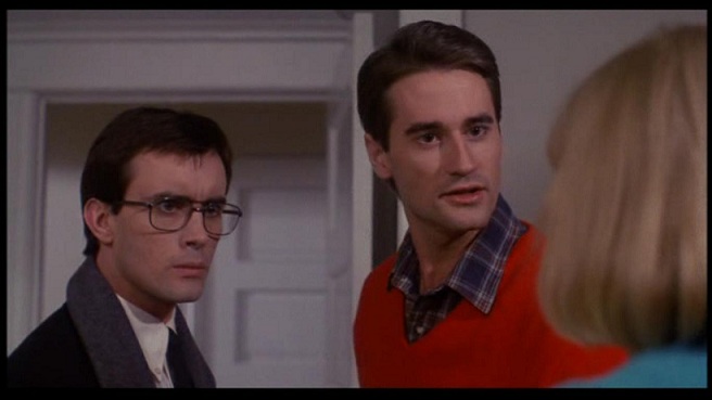 Like the protagonist in House of the Devil, he strikes a Faustian deal because of a need for quick rent money. Then it’s only a waiting game until Herbert West reveals his plans. His serum, seemingly extracted from a glow stick, can reanimate the dead. That goes about as well as it usually does, and the film builds to a bloody climax of crazed corpses and a decapitated head, as well as his compliant body (David Gale, whose leering, creepy, long-faced character appeared semi-cadaverous even before his decapitation), that becomes the primary antagonist.  That turn of events should feel unseemly and upsetting, but it’s too outlandish to take seriously.