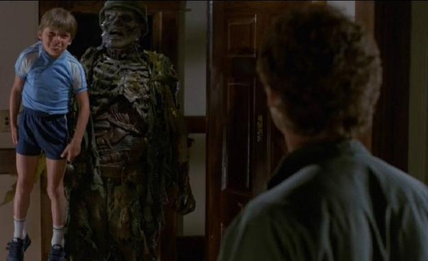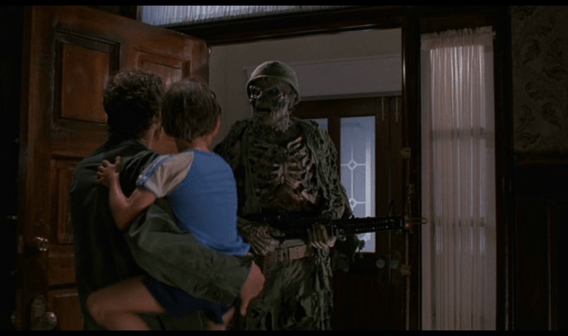 So, when his aunt commits suicide he moves into her home for some quality “isolation” time. He’ll surely just clickety-clack away in the quiet confines of her spacious home. Instead, he mostly has Evil Dead II-like slapstick bouts with monsters. Turns out, being back in the same home his own son mysteriously disappeared from some time back wasn’t the best recipe for his sanity. The house is super haunted, helping to turn his tortured Vietnam memories into tangible creatures he has to contend with, some of which are big, rubber, cartoony creations…