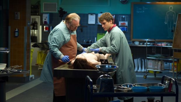 When it comes to horror settings, there’s probably no better place to put your characters than a morgue. They’re usually darkly lit, littered with corpses and sharp knives, and those who actually work in them are small in number and distant from any potential assistance. Øvredal, best known for Troll Hunter, milks its setting for everything its worth, creating an environment where something deadly could emerge from a darkened corner at any second. Earlier in the film, Tommy Tilden makes a casual reference to the anachronistic practice of putting a bell around someone’s leg so they could make noise if they awoke following a burial. As a viewer, your awareness piques, because you know at some point, you’re going to hear an ominously ringing bell.