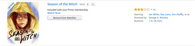 Ever since Rebekah McKendry praised George Romero’s Season of the Witch – a film I’d never heard of before – on the Shock Waves podcast, I’ve been meaning to finally give it a look. With The CW’s Charmed reboot, Hulu’s Light as a Feather, and Netflix’s The Chilling Adventures of Sabrina suddenly putting witchcraft back into the pop culture air, now seemed like a good time to finally get around to that. After all, Season of the Witch is on Amazon Prime. It’s only 89 minutes long, and it has this killer cover photo which always reminds me of Alyson Hannigan for some reason: